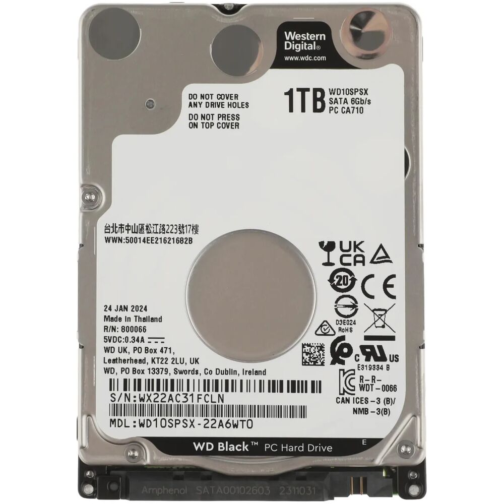 Внутренний жесткий диск 2,5" 1Tb 2.5" Western Digital (WD10SPSX) 64Mb 7200rpm SATA3 Black