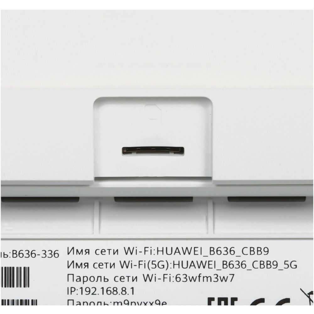 Беспроводной маршрутизатор Huawei B636-336 Wi-Fi 802.11n, 802.11ac, 802.11ax 2.4+5 ГГц 400 Мбит/с белый