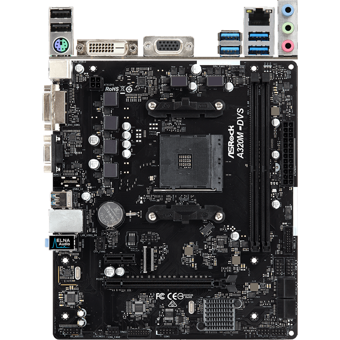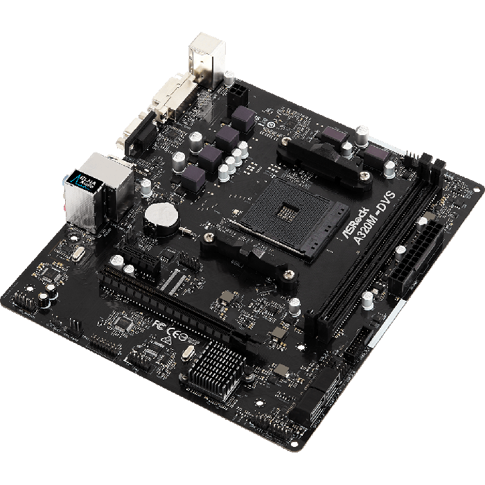 Материнская плата ASRock A320M-DVS R4.0 A320 Socket-AM4, 2xDDR4, 4xSATA3, 4xUSB3.1, 1xPCI-E16x, DVI-D, D-Sub, GLAN, mATX