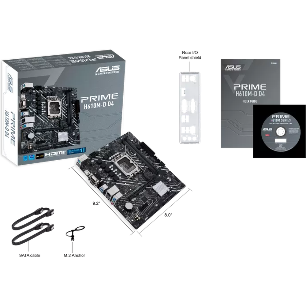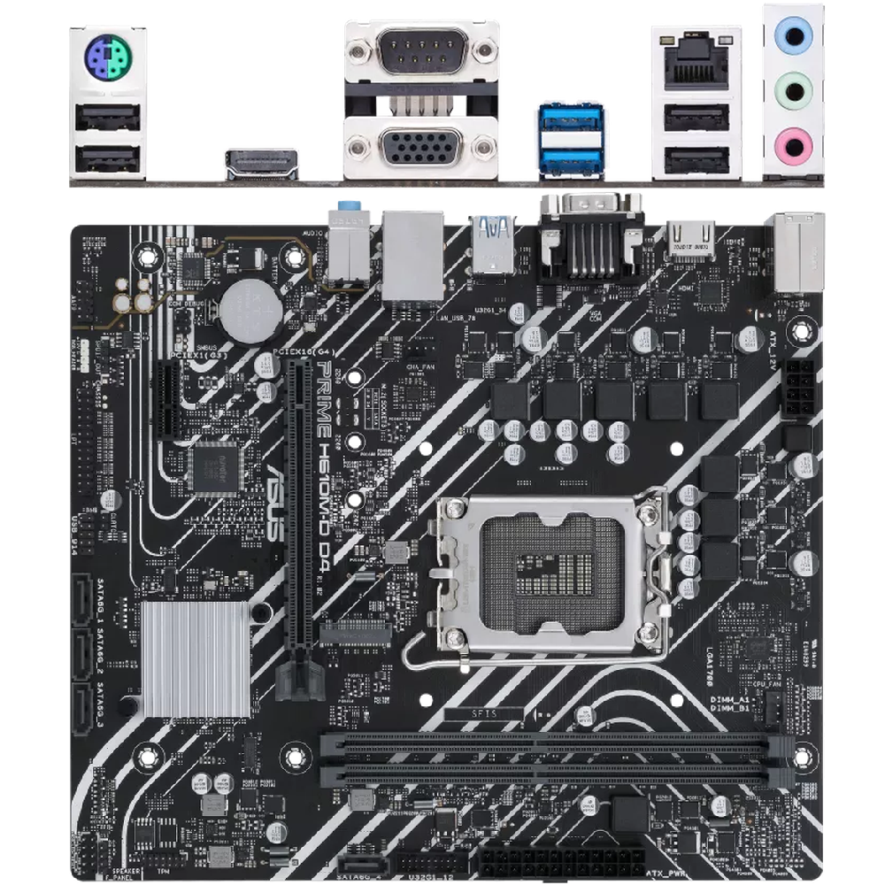 Материнская плата ASUS Prime H610M-D D4 H610 Socket-1700 2xDDR4, 4xSATA3, 1xM.2, 1xPCI-E16x, 2xUSB3.2, 1xCOM, D-Sub, HDMI, Glan, mATX