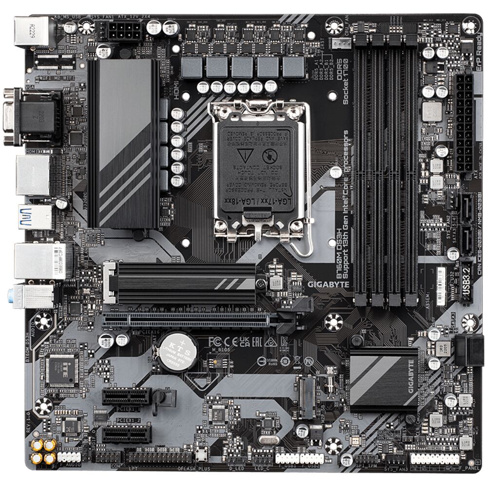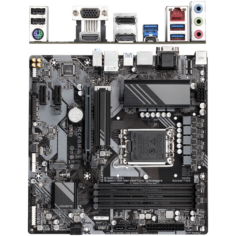Материнская плата Gigabyte B760M DS3H B760 Socket-1700 4xDDR5, 4xSATA3, RAID, 2xM.2, 1xPCI-E16x, 3xUSB3.2, 1xUSB3.2 Type C, D-Sub, 2xDP, HDMI, 2.5Glan, mATX