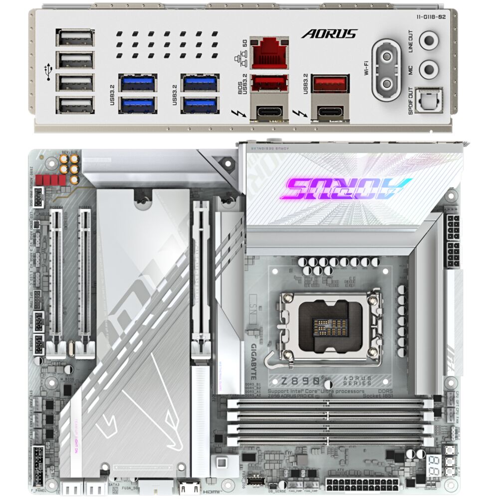 Материнская плата Gigabyte Z890 AORUS Pro Ice Z890 Soc-1851 4xDDR5, 4xSATA3, RAID, 5хM.2, 3xPCI-E16x, 6xUSB3.2, 2xUSB3.2 Type C, DP, WiFi, 5Glan, ATX