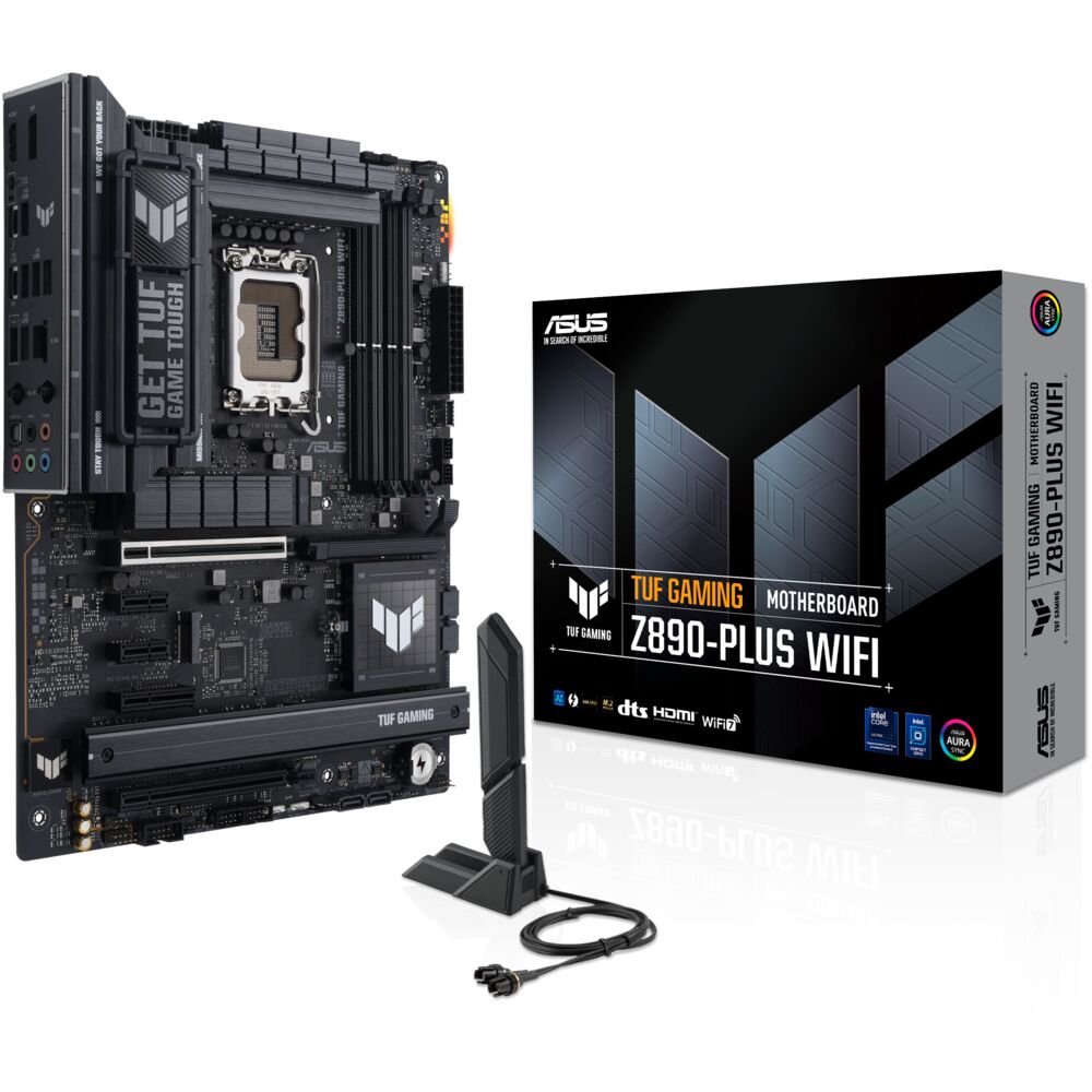 Материнская плата ASUS TUF Gaming Z890-Plus WiFi Z890 Soc-1851 4xDDR5, 4xSATA3, RAID, 4хM.2, 5xPCI-E16x, 6xUSB3.2, 2xUSB3.2 Type C, DP, HDMI, WiFi, 2.5Glan, ATX
