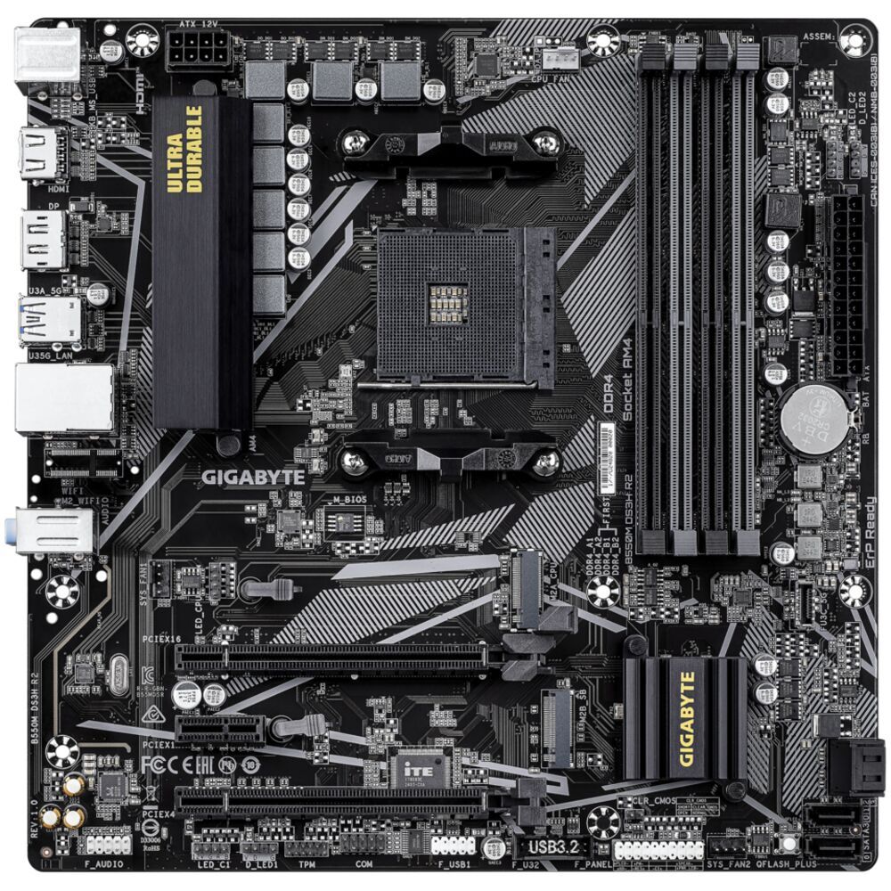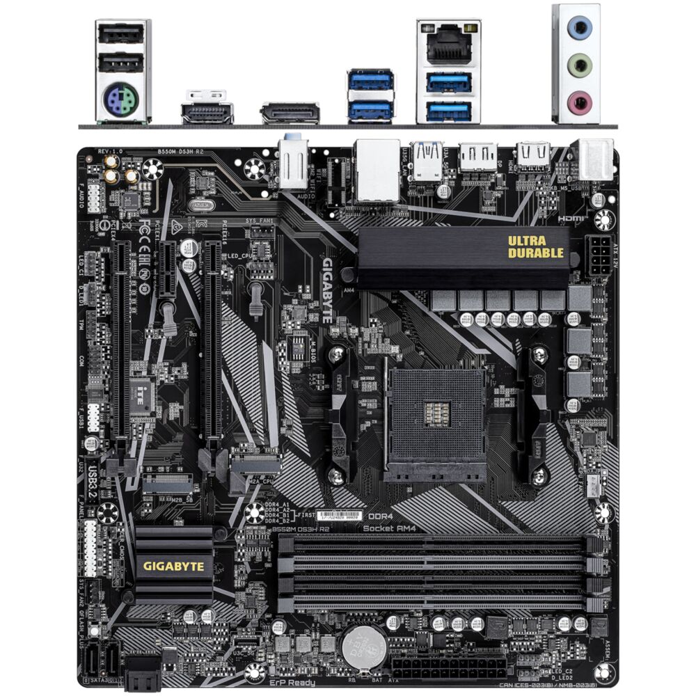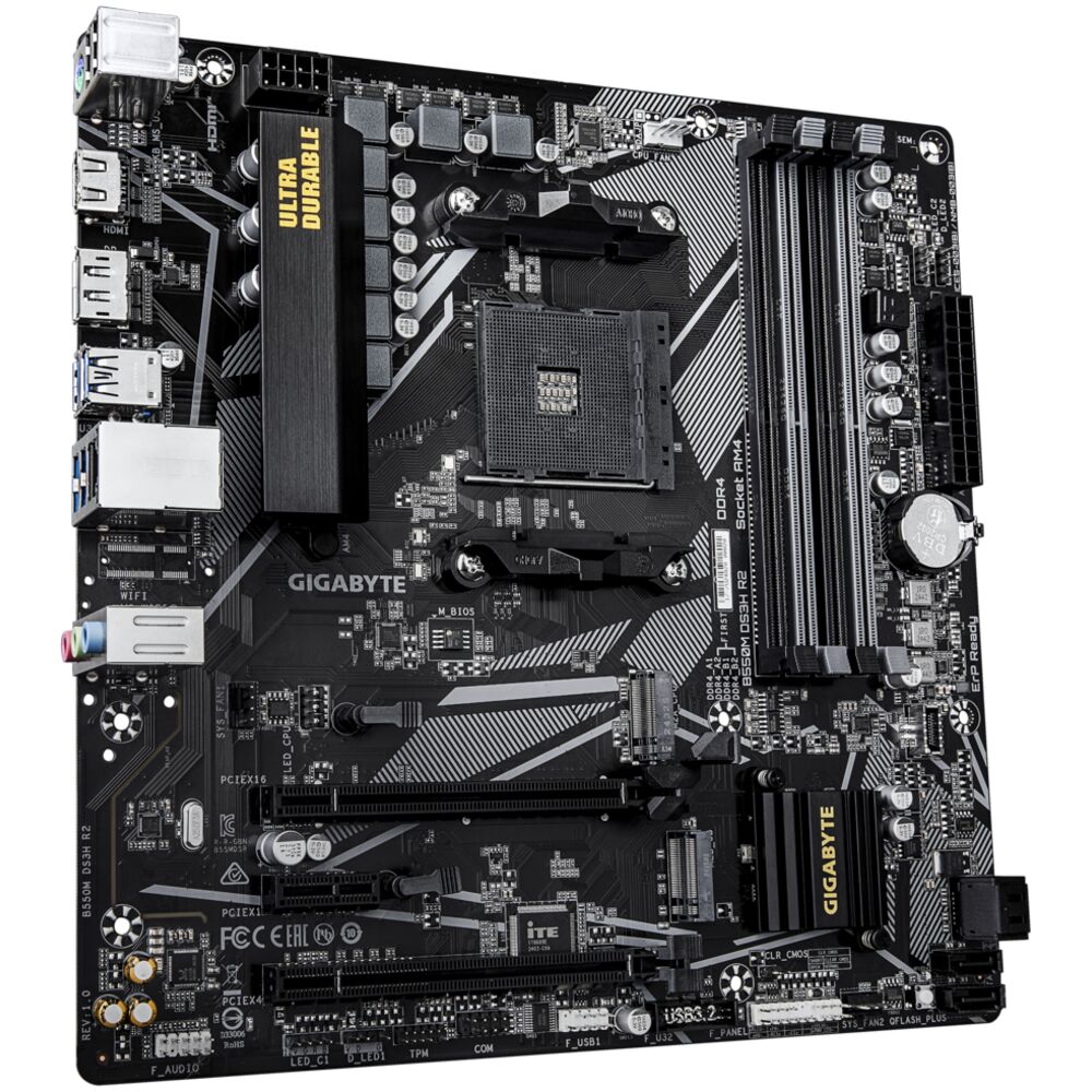 Материнская плата Gigabyte B550M DS3H R2 Socket-AM4 AMD B550 4xDDR4, 4xSATA3, RAID, 2xM.2, 2xPCI-E16x, 4xUSB3.2, DP, HDMI, Glan, mATX Ret