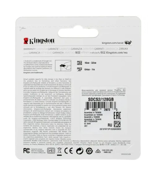 Карта памяти Micro SecureDigital 128Gb Kingston Canvas Select Plus SDXC class 10 UHS-I (SDCS2/128GB) + SD adapter