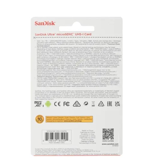 Карта памяти Micro SecureDigital 128Gb SanDisk Ultra microSDXC class 10 UHS-1 (SDSQUNR-128G-GN6MN)