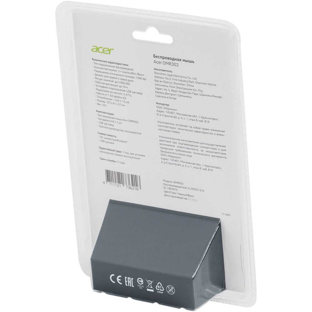 Мышь беспроводная Acer OMR302 Black Wireless