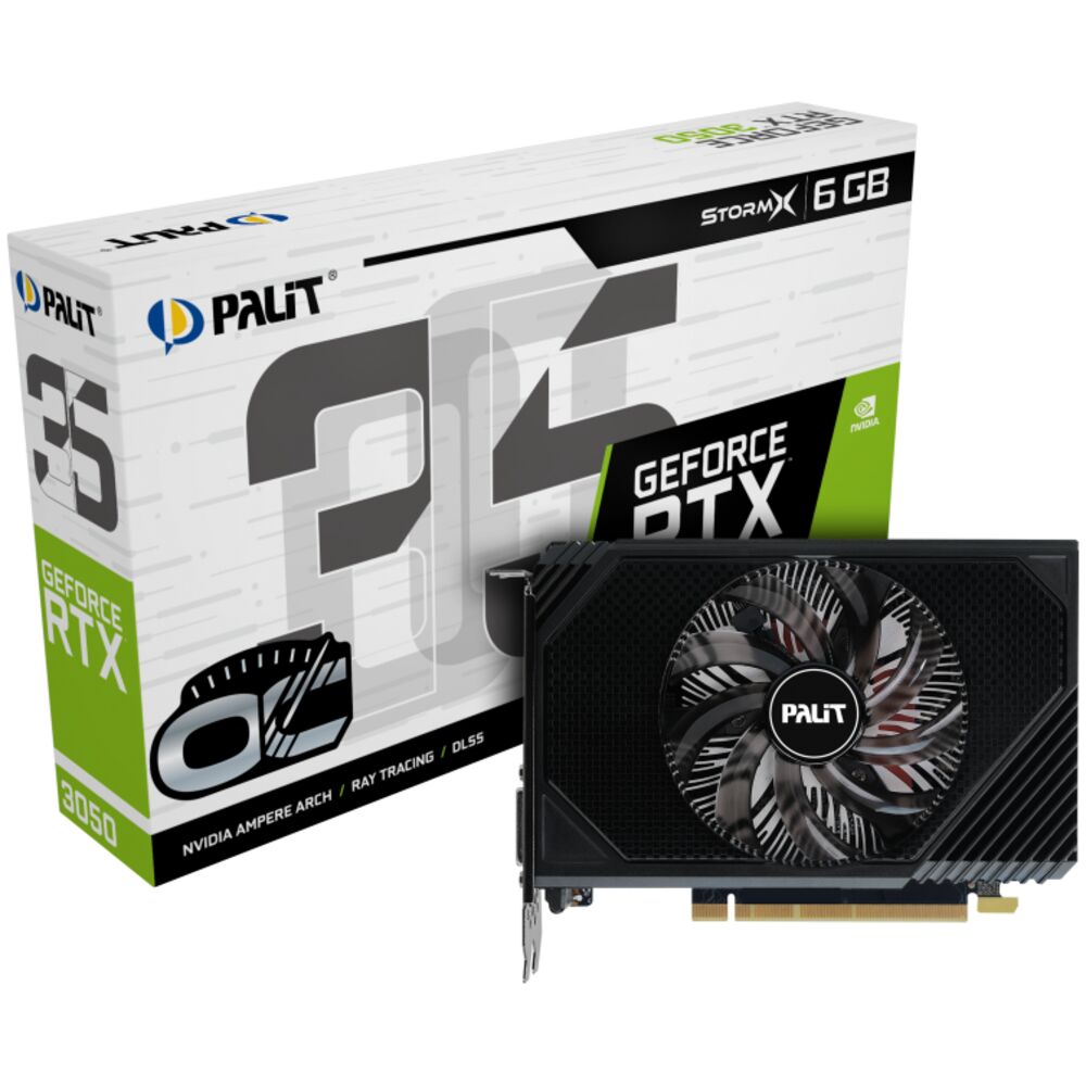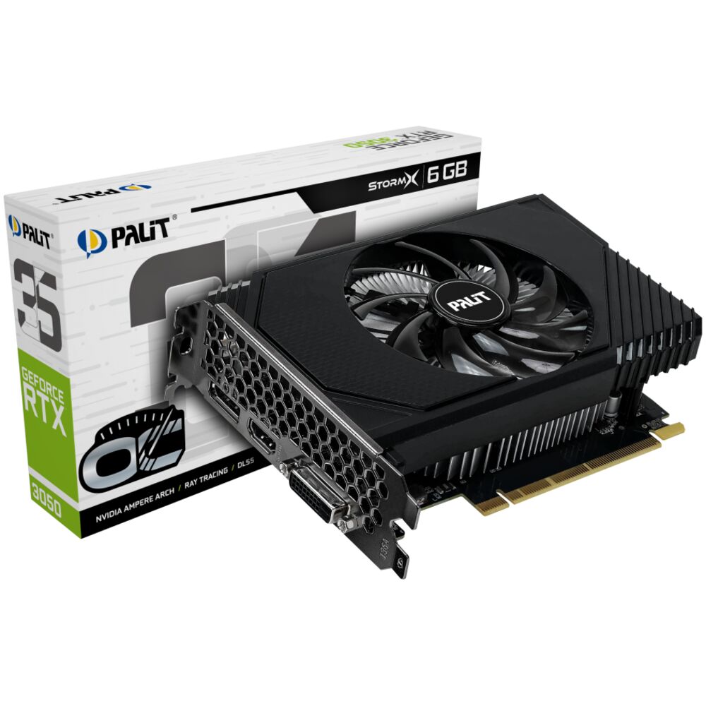 Видеокарта Palit GeForce RTX 3050 6144Mb, StormX OC 6G V1 (NE63050S18JE-1072F) 1xDVI-D, 1xHDMI, 1xDP, Ret